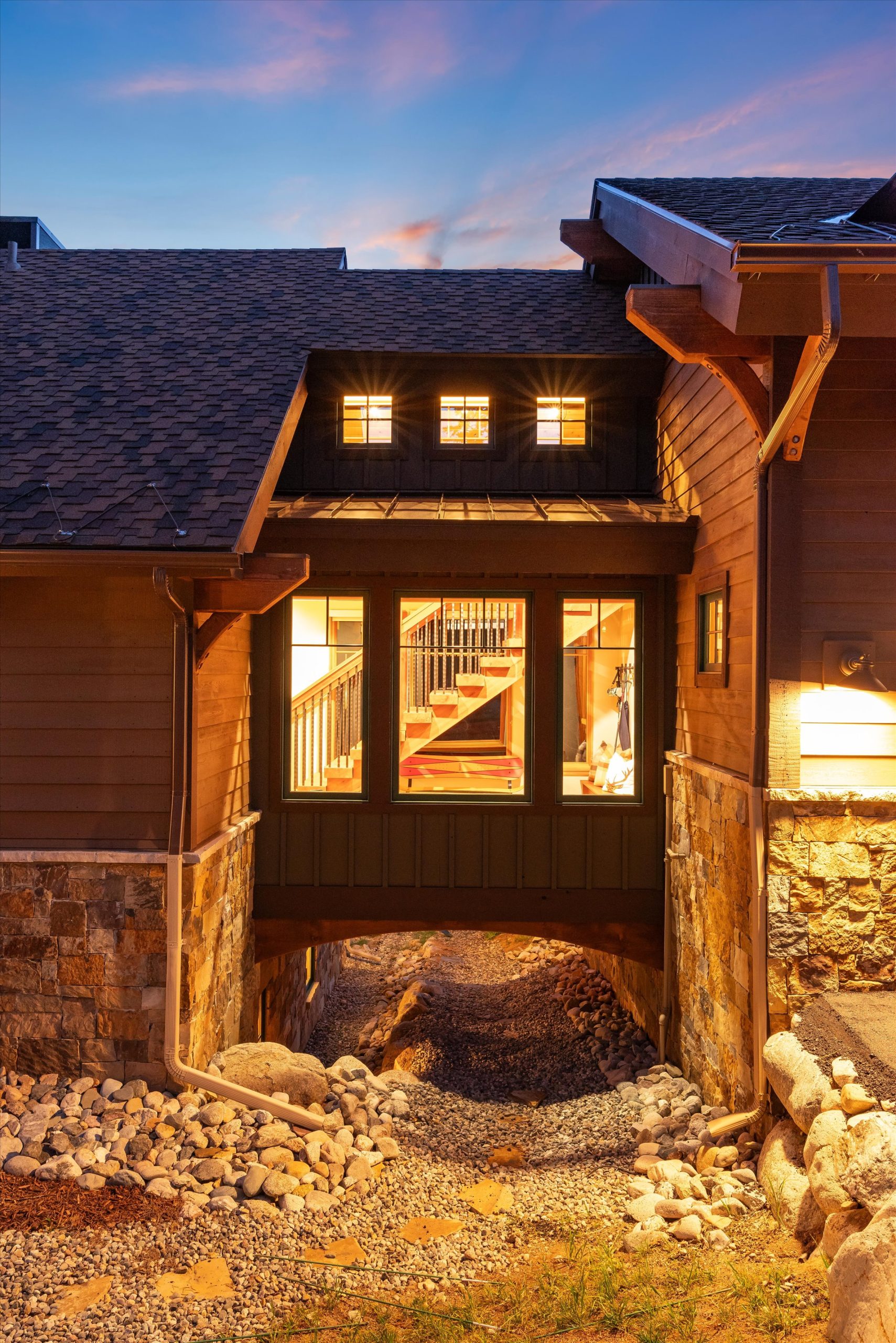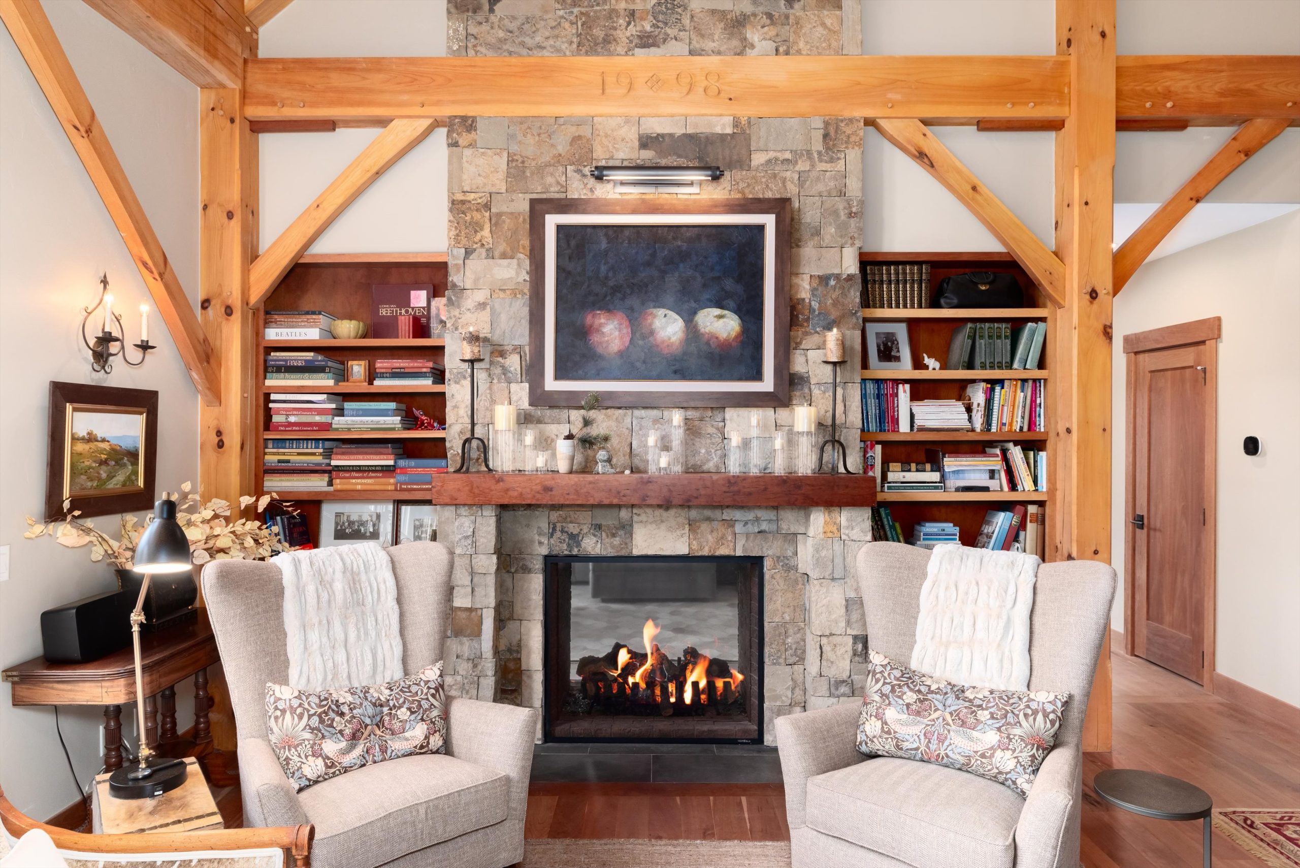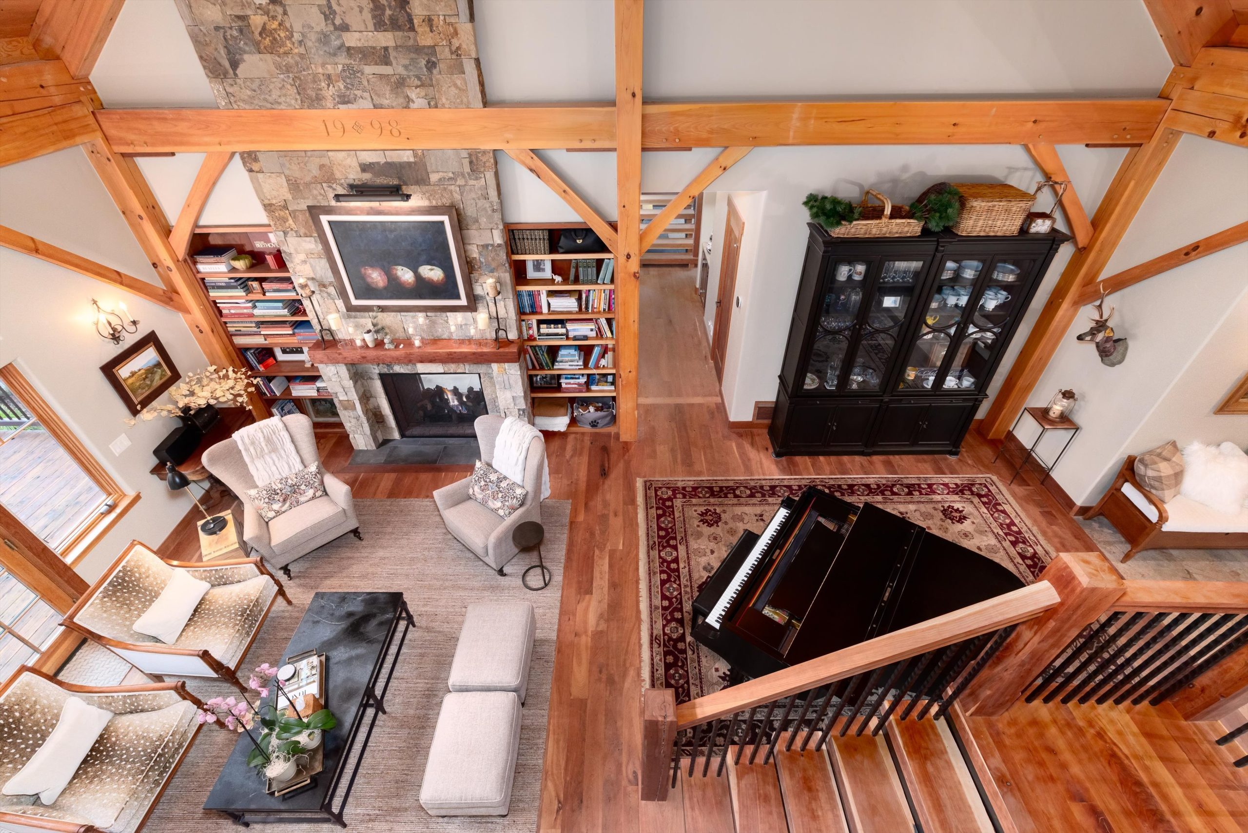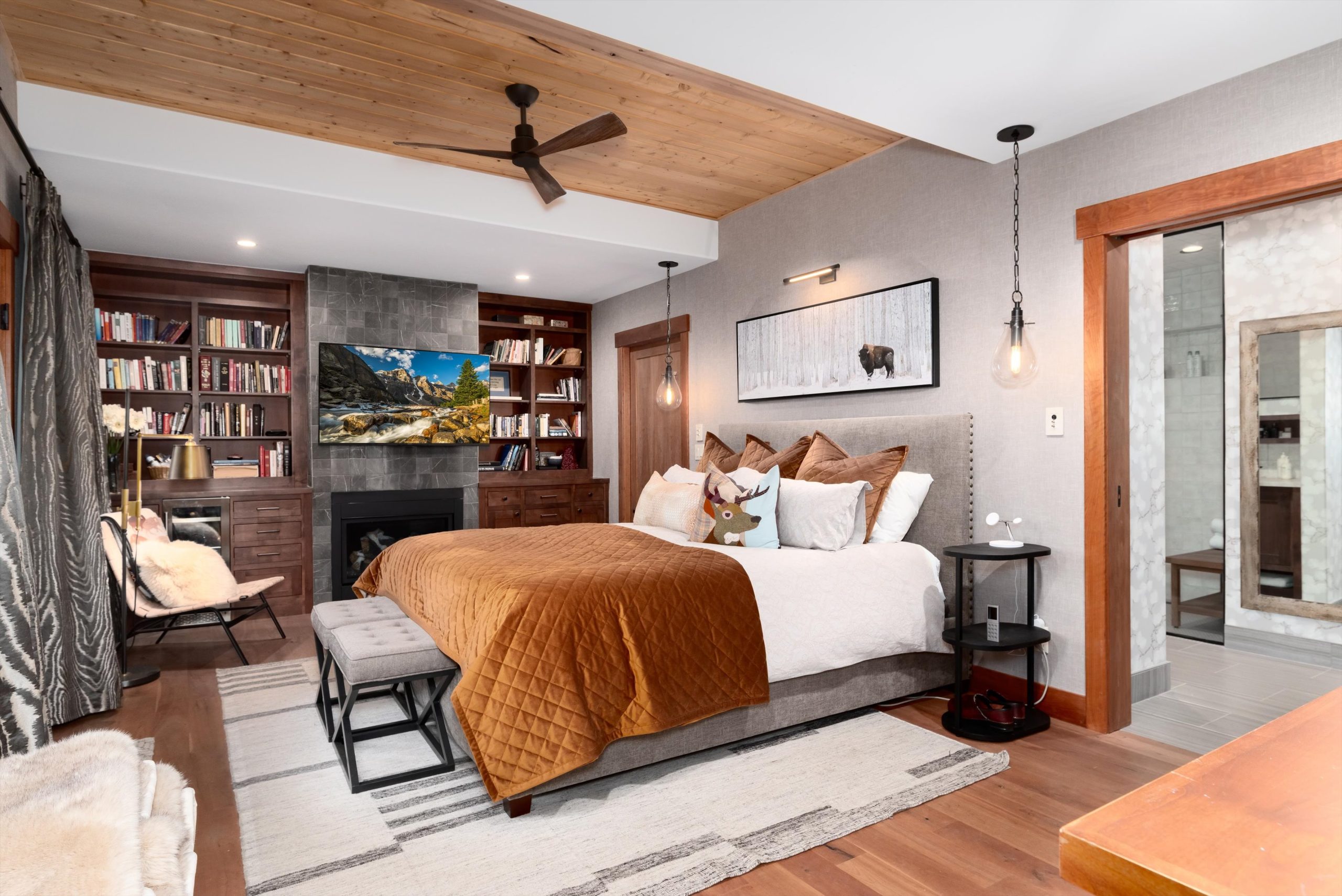 The remarkable home addition is filled with unique surprises, featuring a rare front-loading garage unheard of in this neighborhood, a habitable bridge that gracefully connects the existing structure with the new space, four oxygen bedrooms for your low-altitude guests, a grand see-through fireplace, and two elegant cherry timber stairs accented by cherry hardwood floors and beautiful timber craftsmanship throughout. The home’s design embraces the captivating views while maximizing every available opportunity for the best allowable building height, side-yard setbacks, and driveway access in a code-conscious environment.