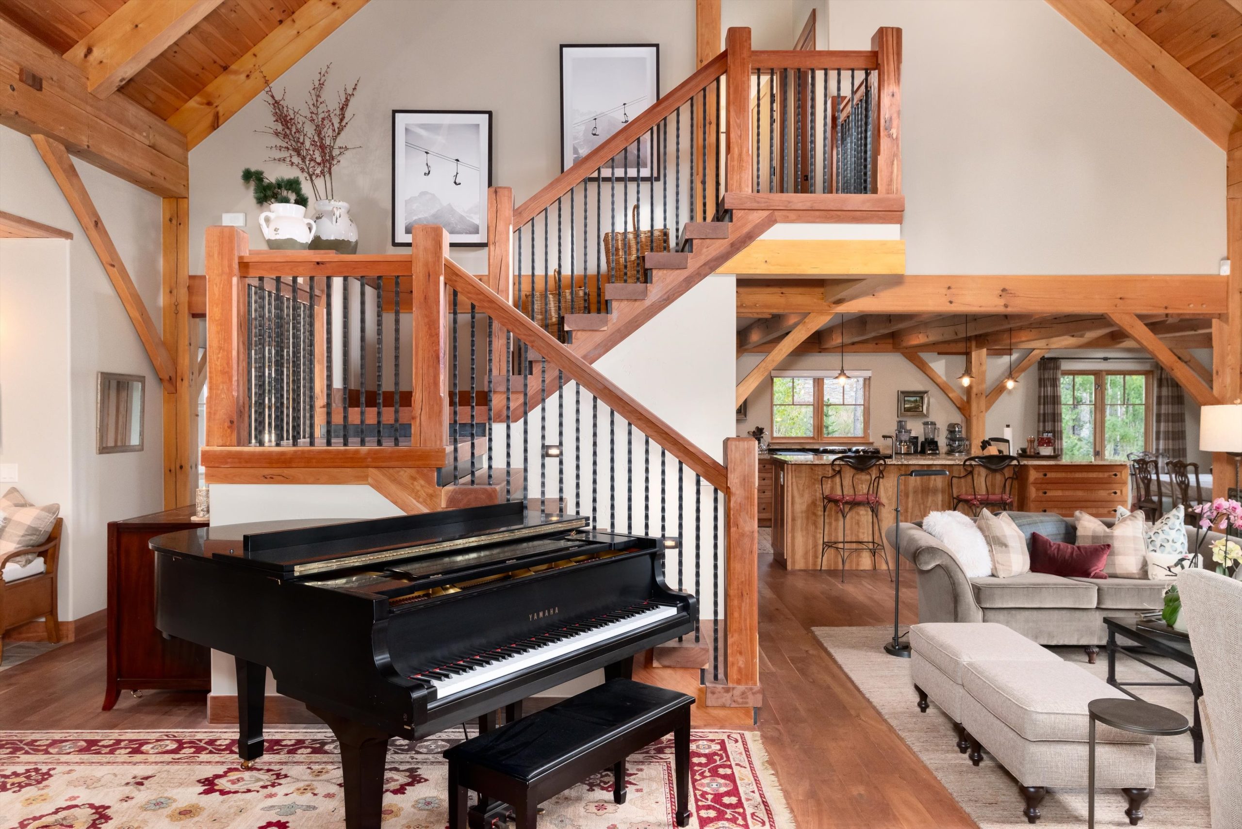 The “Breckenridge Timber Frame” home is a testament to transformation, showcasing a full-scale interior remodel,  a refreshed exterior, and an inspired addition that includes a two-car garage, a stair bridge, and a master bedroom suite with an ensuite bathroom, laundry facilities, and a fireplace. Nestled in the prestigious Highlands at Breckenridge neighborhood, this home offers breathtaking views of the Breckenridge ski resort and the surrounding alpine forest.
